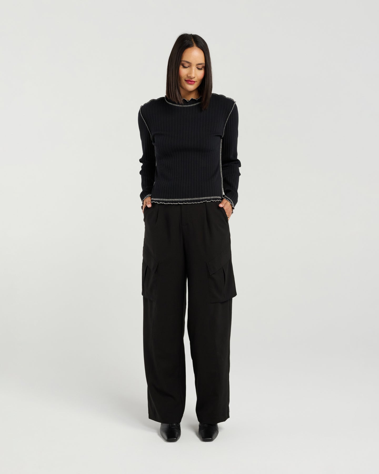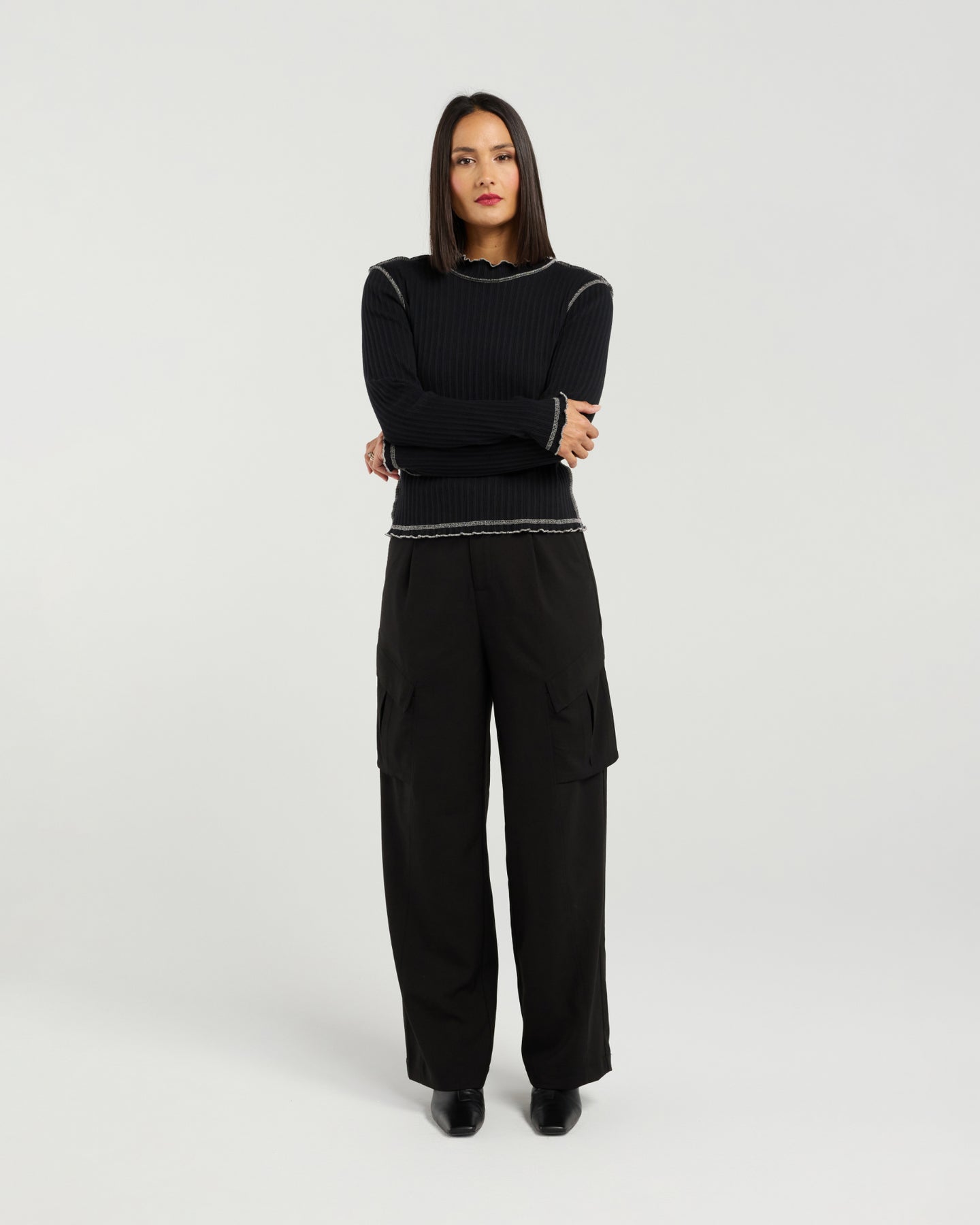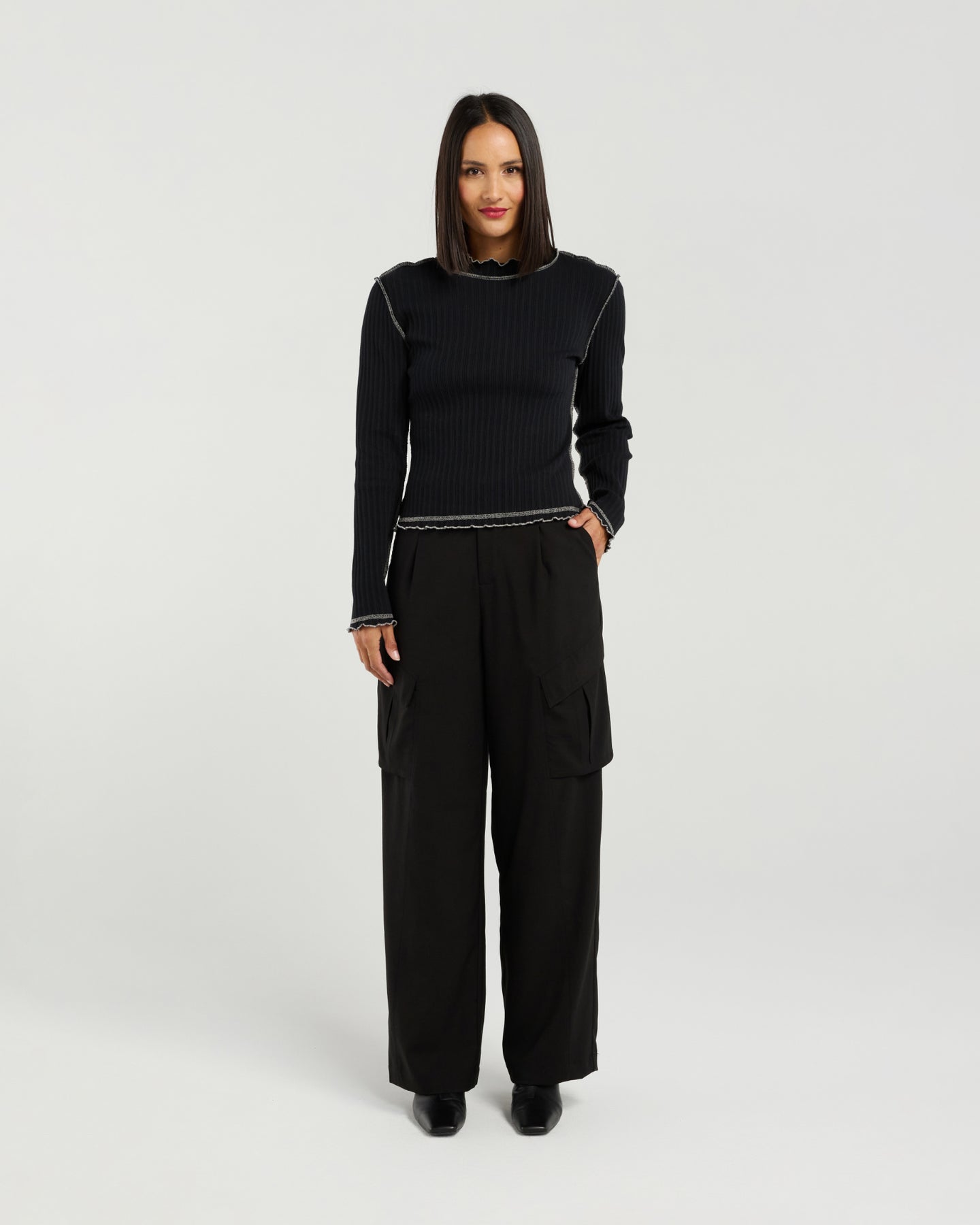 Effortless with a touch of attitude, the Isla Top brings a fresh, modern twist to everyday style. Crafted from soft, breathable cotton rib, it offers comfortable stretch and a flattering, body-skimming fit. The long sleeves keep it sleek and versatile, while the exposed overlocking adds an edgy, fashion-forward detail that sets it apart from a classic basic.