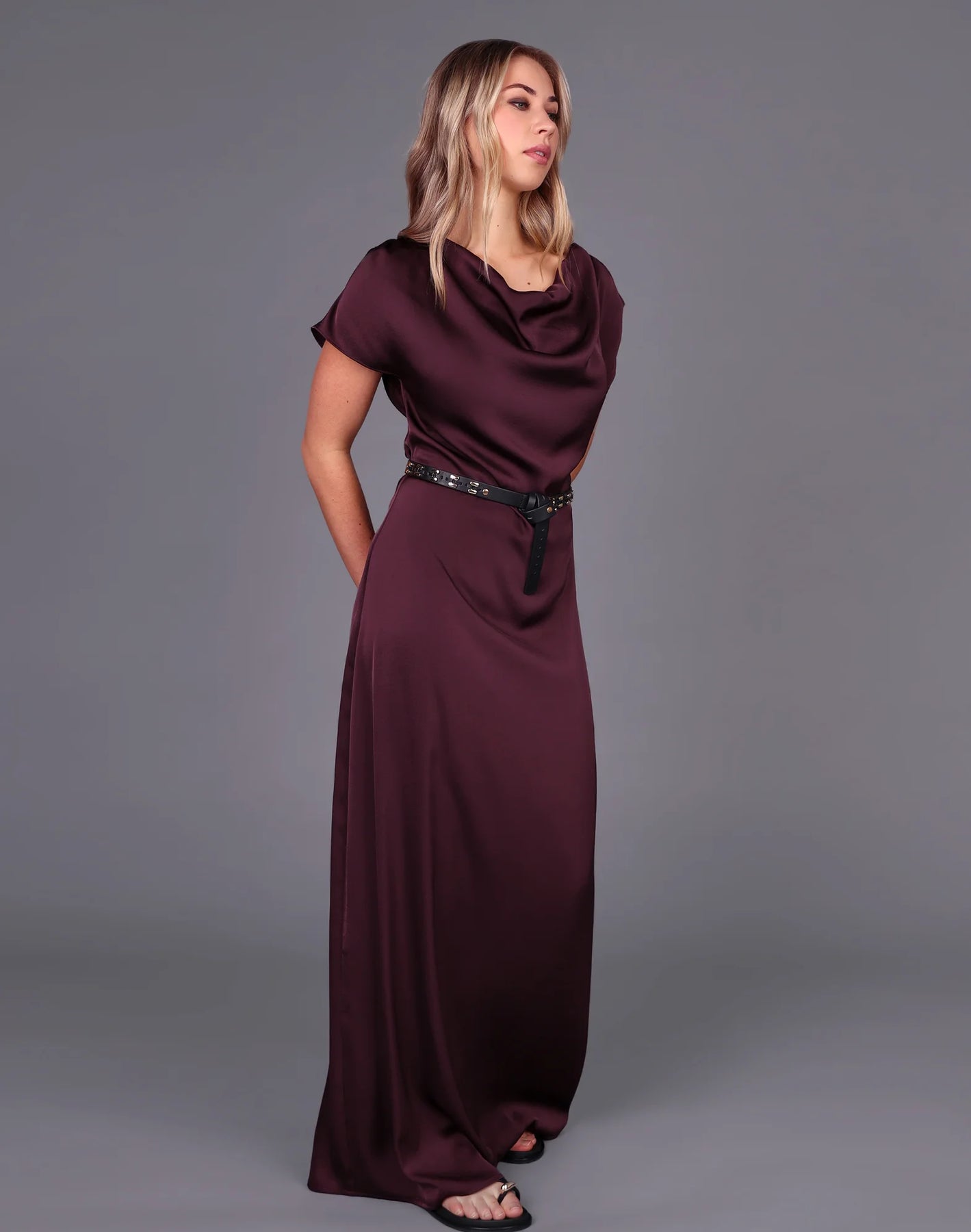 Flattering and versatile, this lightweight satin dress has unlimited styling potential, and it looks incredible doing it.