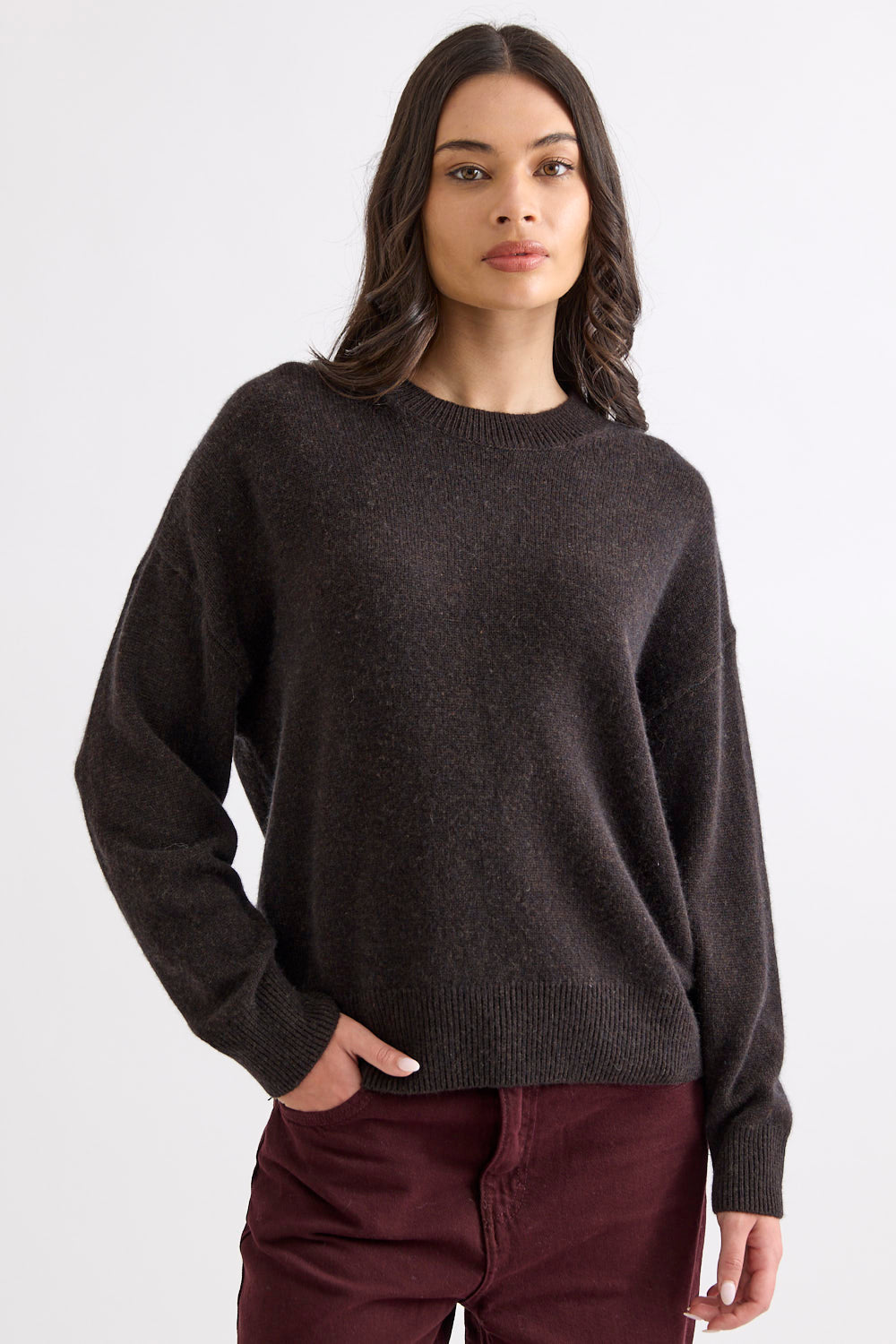 The Hunter Crew is a foundational winter essential crafted from a premium blend of Australian Merino and Mongolian Cashmere. Designed for a serene sense of luxury, it offers a sophisticated, relaxed silhouette with a smooth, high-density finish. It serves as a versatile anchor for the modern wardrobe, providing enduring warmth and a graceful drape.