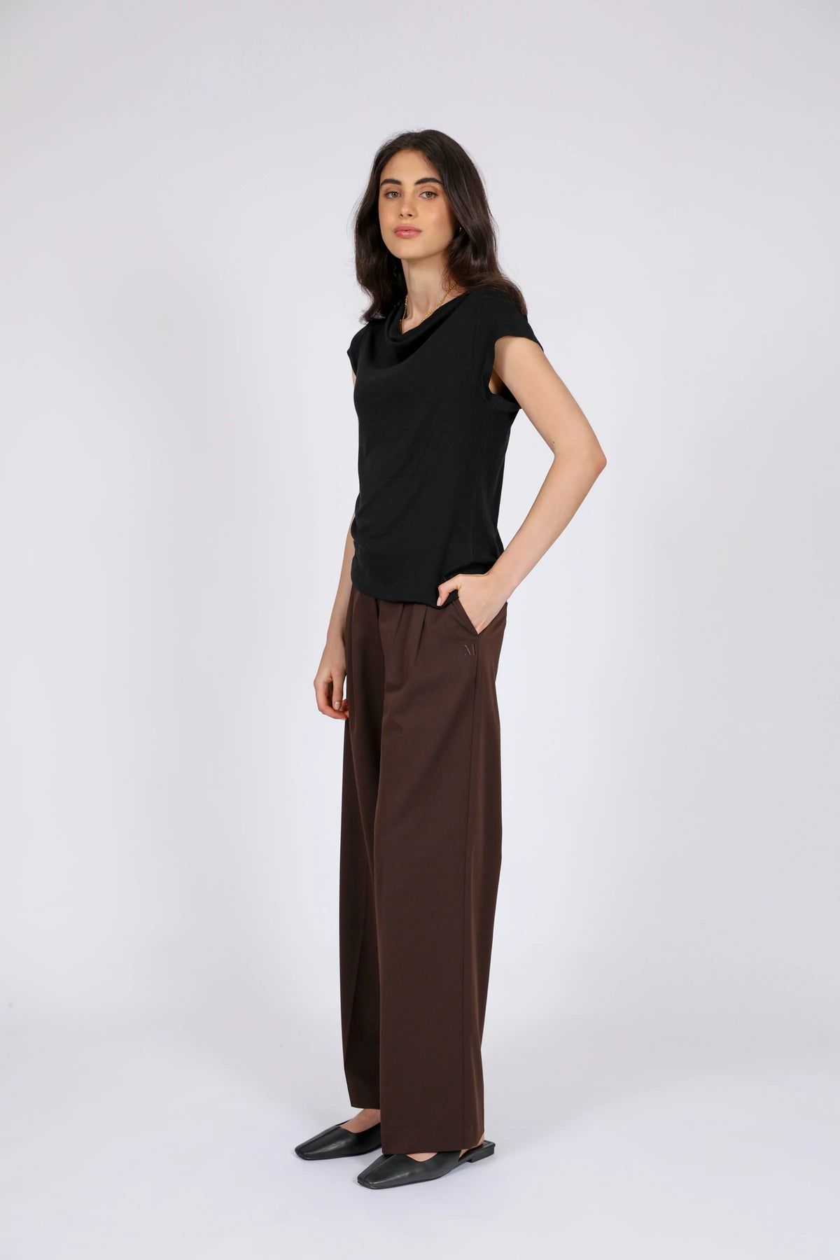 Effortless and versatile, the Roam Short Sleeve is set to be on high rotation. Crafted from a lightweight Tencel-wool blend jersey, it’s exceptionally soft, breathable, and easy to layer. This short sleeve style features a subtle cap sleeve, a versatile cowl neckline that can be worn as is or off the shoulder, and a centre-front seam for an elevated finish. Wear it with denim for an effortless weekend look, or layer it under a blazer for the office.