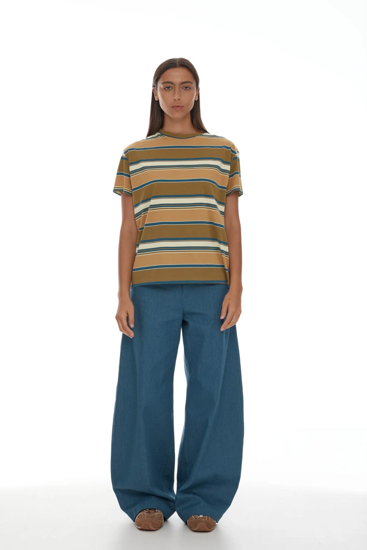 Introducing the Aiden Tee, an expertly crafted tee shirt made from high quality cotton. It features a unique stripe and contrast neckband, creating a bold and eye-catching look. Made for comfort and style, this tee is a must-have addition to any wardrobe.