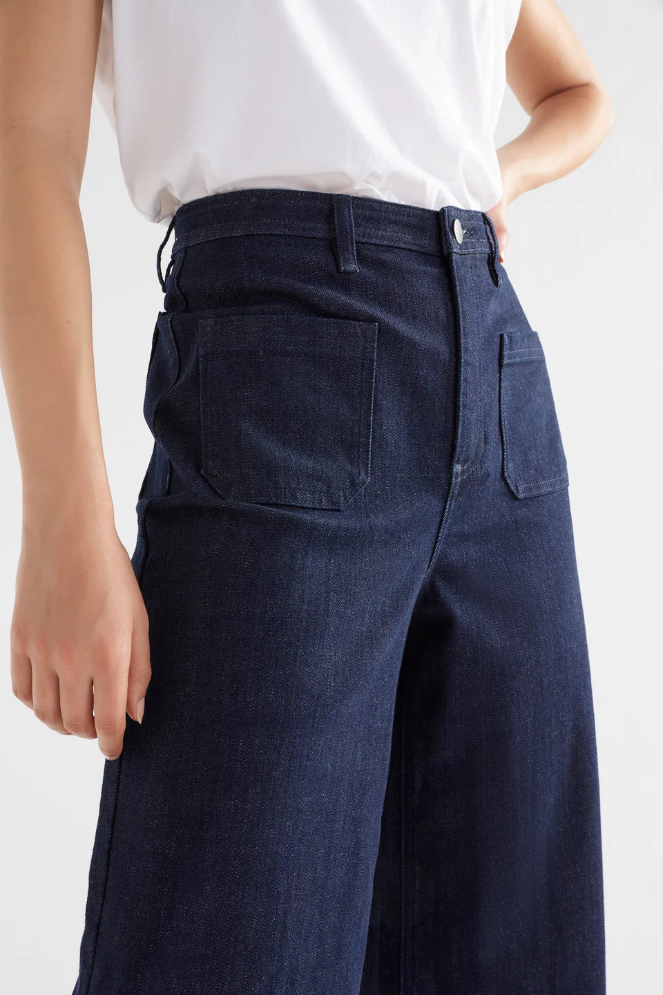 The Sondern Jean is a new take on our favourite Tovi Jean cut. Boasting a wide leg and high-rise waist with two feature patch front pockets, adding a vintage appeal. This jean offers versatility with a modern edge. Crafted with a slight stretch for flexibility, it maintains impeccable shape and structure throughout wear.